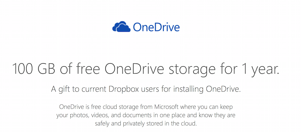 Hace unos días os conté cómo conseguir 100GB gratis en OneDrive únicamente iniciando sesión con vuestra cuenta de Microsoft. Hoy os quiero contar cómo conseguir otros 100GB más en OneDrive, aunque en este caso esta oferta está reservada a aquellos usuarios de Dropbox.